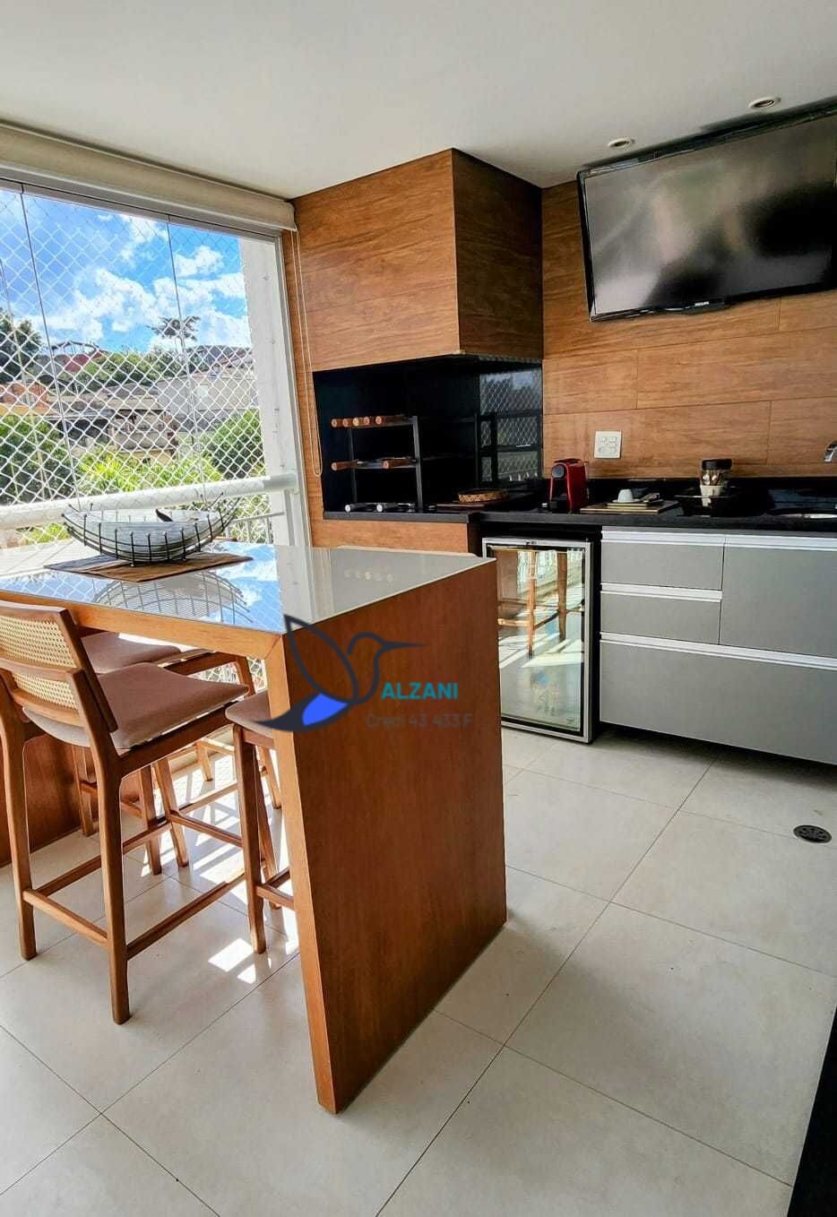 Apartamento com varanda gourmet com churrasqueira, 3 suítes com armários, lavabo, total de 4 banheiros, sala com home ticher em 2 ambientes, linda cozinha planejada, 2 vagas de garagem com depósito, área de lazer completa, com academia, piscina, campo de futebol, estúdio de pilates, 6 espaços para festas, visita somente com o corretor autorizado.